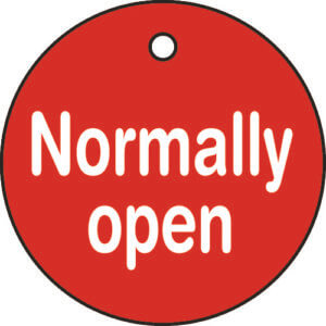 ป้ายเปิด/ปิดวาล์ว ปกติเปิด (สีแดง) 50 มม.Φ จอแสดงผลสองด้าน PET
