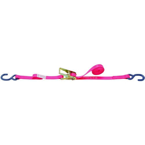 สายรัดเข็มขัด แบบมีฟันเฟือง ตะขอรูปตัว S (ใหญ่) กว้าง 25มม. x หนา 1.8มม. รับน้ำหนักได้ 160กก. สีชมพู