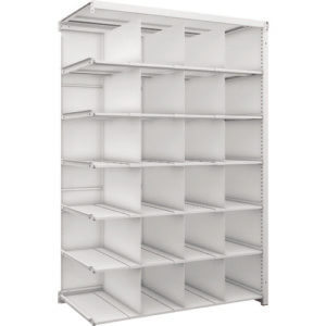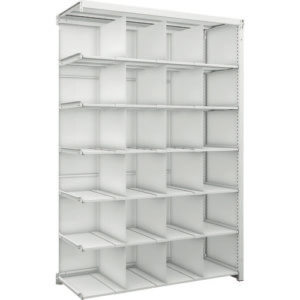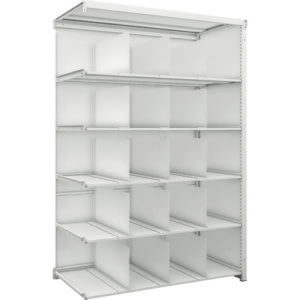 ชั้นเก็บของความหนาแน่นสูงเคลือบสารต้านแบคทีเรียชนิด K1 พร้อมแผ่นหลังและแผงด้านข้าง H1900XW1250XD475 6 ระดับพร้อม 15 พาร์ติชั่นแบบเชื่อมต่อ