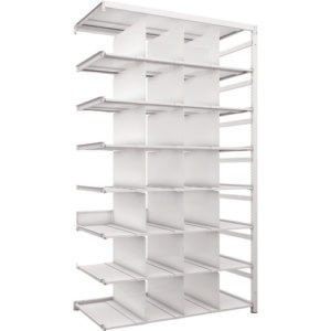 ชั้นเก็บของเคลือบสารต้านแบคทีเรียชนิด K1 ความหนาแน่นสูง H2200XW1250XD625 8 ชั้นพร้อม 21 พาร์ติชั่นแบบเชื่อมต่อ
