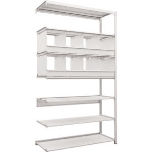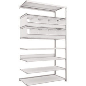 ชั้นเก็บของเคลือบสารต้านแบคทีเรียชนิด K1 ความหนาแน่นสูง H2200XW1250XD475 7 ระดับพร้อมถาดแบ่ง 8 ถาดชนิดเชื่อมต่อ