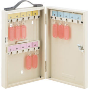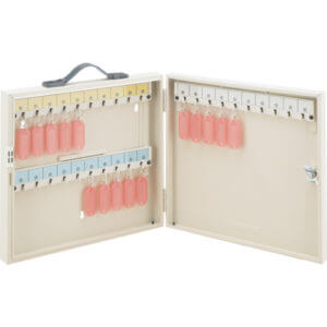 ตู้เก็บกุญแจ (Key Box) เป็นอุปกรณ์จัดเก็บกุญแจที่ออกแบบมาเพื่อช่วยให้การเก็บรักษาและบริหารจัดการกุญแจจำนวนมากเป็นระเบียบ ปลอดภัย และหยิบใช้งานได้ง่าย โดยตู้เก็บกุญแจมักผลิตจากวัสดุที่แข็งแรงและทนทานต่อการใช้งาน เช่น เหล็กเคลือบกันสนิมหรือพลาสติก ABS มีขนาดให้เลือกหลากหลาย ตั้งแต่แบบแขวนผนังขนาดเล็กสำหรับบ้านทั่วไป ไปจนถึงตู้ขนาดใหญ่สำหรับองค์กร ซึ่งสามารถเก็บกุญแจได้ตั้งแต่หลักสิบถึงหลายร้อยดอก ภายในตู้มักมีตะขอแขวนพร้อมป้ายเลขหรือป้ายเขียนชื่อ เพื่อระบุเจ้าของหรือวัตถุประสงค์ของกุญแจได้อย่างชัดเจน เหมาะสำหรับใช้ตามองค์กร โรงแรม โรงงาน อาคารสำนักงาน หรือสถานที่ที่ต้องควบคุมการเข้าถึงพื้นที่ต่างๆ อย่างเป็นระบบ