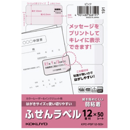 ป้ายสติกเกอร์ขนาดโปสการ์ด ใช้งานง่าย 12 ด้าน สีชมพู KPC-PSF12-50P