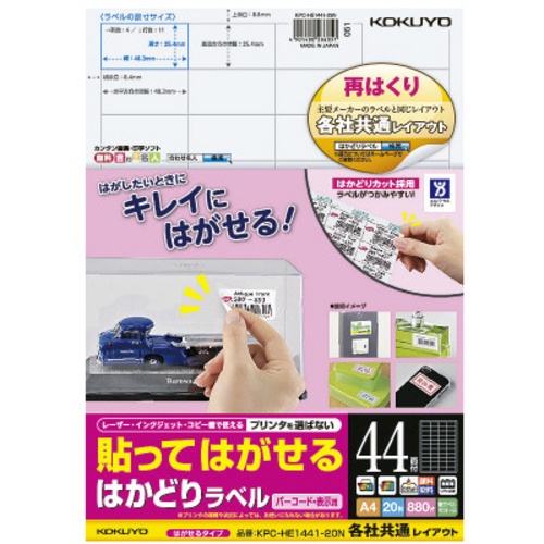 ป้ายฮาคาโดริแบบลอกออกได้ 44 แผ่น อเนกประสงค์ 20 แผ่น KPC-HE1441-20N