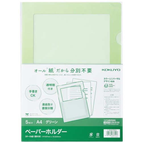 ที่ใส่กระดาษ <กระดาษทั้งหมด> (มีหน้าต่าง) แพ็ค 5 ชิ้น สีเขียว Foo-RKM750G