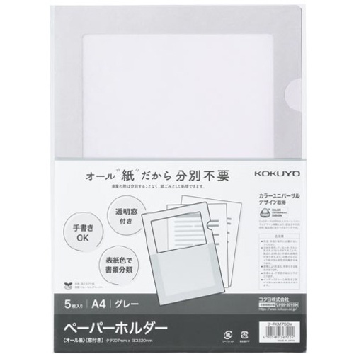 ที่ใส่กระดาษ <กระดาษทั้งหมด> พร้อมหน้าต่าง แพ็ค 5 ชิ้น สีเทา F-RKM750M