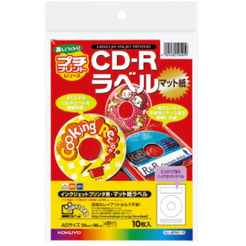 กระดาษฉลากอิงค์เจ็ท CD-R แบบด้าน A5 10 แผ่น KJ-J87461-10