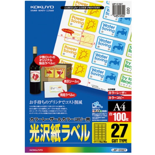 ฉลากกระดาษมันสำหรับเครื่องพิมพ์เลเซอร์ ขนาด A4 27 แผ่น 100 แผ่น LBP-G1927