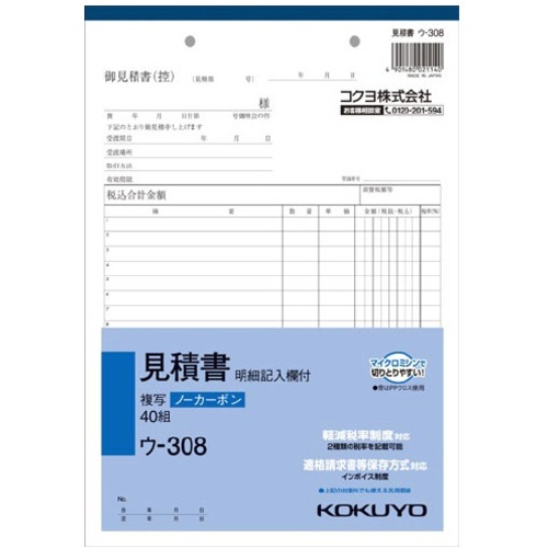 ใบเสนอราคาขนาด B5 พร้อมช่องรายละเอียด ไร้คาร์บอน U-308, U-308