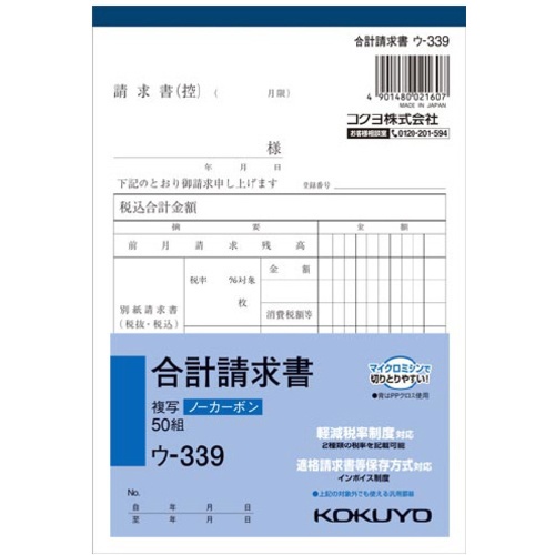 ใบแจ้งหนี้รวม B6 Portrait 50 ชุด Carbonless U-339