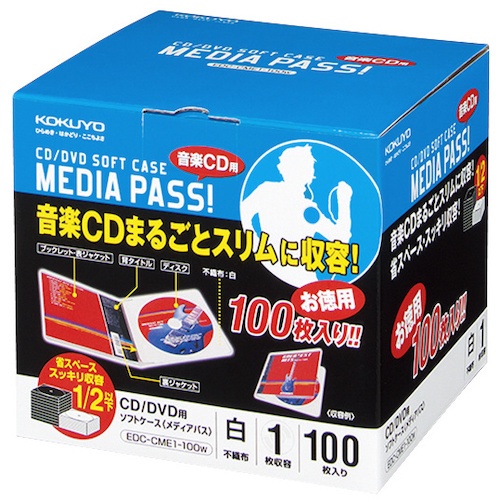 กล่องใส่ซีดี/ดีวีดีแบบนิ่ม 100 แผ่น สีขาว EDC-CME1-100W