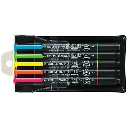 ชุดปากกามาร์คเกอร์เรืองแสงคู่ Prefix 5 สี PM-L202-5S