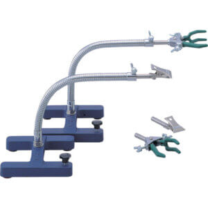 แคลมป์หนีบสำหรับอุปกรณ์ห้องแล็บ ที่หนีบแบบ 3 ง่าม เป็นอุปกรณ์สำคัญสำหรับงานห้องปฏิบัติกาที่ใช้ยึดขวด แก้วบีกเกอร์ หลอดทดลอง หรืออุปกรณ์อื่นๆ ในขณะทำการทดลองให้อยู่กับที่อย่างมั่นคง ผลิตจากโลหะผสมวัสดุกันลื่นที่ทนทานต่อสารเคมีและความร้อน มีให้เลือกใช้งานหลายขนาดและรูปแบบ เช่น แบบหนีบปากยาง ปากโลหะ หรือปากกว้าง ซึ่งสามารถปรับองศาและความกว้างได้อย่างแม่นยำ เหมาะสำหรับใช้ในการควบคุมอุปกรณ์ที่ต้องการความมั่นคงสูงทั้งในงานวิจัยและการทดลองในห้องแล็บ