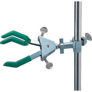 แคลมป์หนีบสำหรับอุปกรณ์ห้องแล็บ ที่หนีบแบบ 3 ง่าม เป็นอุปกรณ์สำคัญสำหรับงานห้องปฏิบัติกาที่ใช้ยึดขวด แก้วบีกเกอร์ หลอดทดลอง หรืออุปกรณ์อื่นๆ ในขณะทำการทดลองให้อยู่กับที่อย่างมั่นคง ผลิตจากโลหะผสมวัสดุกันลื่นที่ทนทานต่อสารเคมีและความร้อน มีให้เลือกใช้งานหลายขนาดและรูปแบบ เช่น แบบหนีบปากยาง ปากโลหะ หรือปากกว้าง ซึ่งสามารถปรับองศาและความกว้างได้อย่างแม่นยำ เหมาะสำหรับใช้ในการควบคุมอุปกรณ์ที่ต้องการความมั่นคงสูงทั้งในงานวิจัยและการทดลองในห้องแล็บ