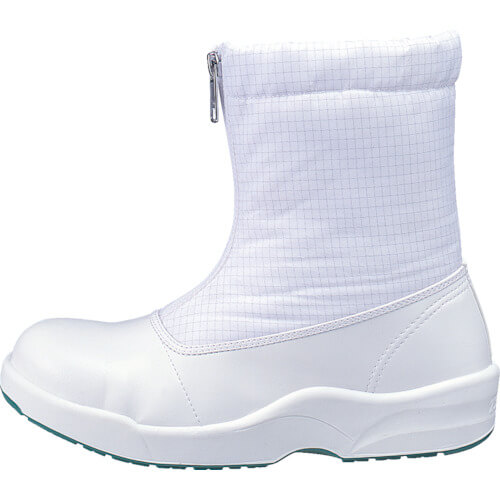 รองเท้านิรภัยป้องกันไฟฟ้าสถิตย์ที่ใช้วัสดุที่มีฝุ่นน้อย สามารถใช้ในห้องสะอาด สามารถซักได้และมีความทนทานต่อการซักได้ดีเยี่ยม รองเท้านิรภัยน้ำหนักเบาพร้อมแกนพลาสติกที่ปลายเท้า (ประสิทธิภาพความปลอดภัยระดับ S) พื้นรองเท้าด้านในใช้ผ้าที่ดูดซับความชื้นและกระจายความชื้นได้ดีเยี่ยม ทำให้สวมใส่สบาย สามารถใช้งานได้อย่างสะดวกสบายโดยใช้วัสดุที่ระบายอากาศได้ดีและความชื้นซึมผ่านได้แต่ไม่กักเก็บความชื้น ผ้าด้านล่างกันคราบ ทำให้กันคราบได้มากขึ้นและขจัดออกได้ง่ายขึ้น ด้านล่างมีการปรับปรุงการรองรับแรงกระแทกและเพิ่มความคล่องตัว ปริมาณการสึกหรอลดลงประมาณ 9.7% ช่วยลดปริมาณฝุ่นที่เกิดขึ้น ผ้าปูพื้นมีก้นโพลียูรีเทน 2 ชั้น (มีผลิตภัณฑ์ที่มีก้นยูรีเทน 1 ชั้นและก้นพีวีซี (P.V.C.) ด้วย)