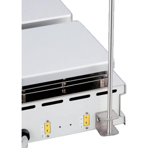 แผ่นเพลททำจากสแตนเลส (SUS304) ที่ทนทานต่อสารเคมีและการกัดกร่อนได้ดีเยี่ยม RS-4DN/6DN สามารถกวนสารละลายหลายตัวในเวลาเดียวกัน เมื่อใช้หัววัดค่า pH หรืออุณหภูมิ ฯลฯ สามารถแก้ไขได้โดยการติดแท่งรองรับ (แยกจำหน่าย) การหมุนที่เสถียรจากความเร็วต่ำถึงความเร็วสูงได้มาจากการนำการควบคุมป้อนกลับความเร็วการหมุนประเภทไมโครคอมพิวเตอร์มาใช้ การตั้งค่าความเร็วในการหมุนเป็นการตั้งค่าแบบดิจิตอล และค่าที่ตั้งไว้และค่าจริงจะแสดงพร้อมกัน
