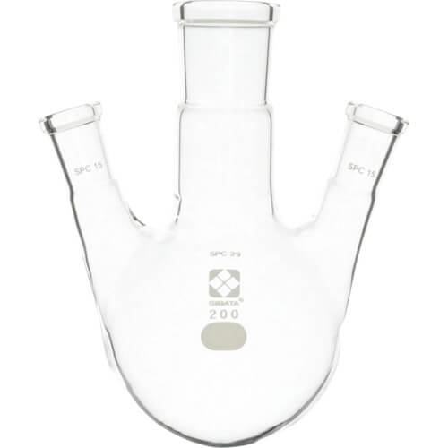 กระติกน้ำแก้วทรงกลมพร้อมพอร์ตเชื่อมต่อ 3 ช่อง พอร์ตการเชื่อมต่อสามารถเชื่อมต่อกับท่อฟิตติ้งแก้ว SPC มาตรฐานประเภท T และประเภท C เดียวกัน