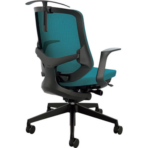 เก้าอี้สำนักงาน สีฟ้าน้ำทะเล มีพนักพิงพร้อมไม้แขวน