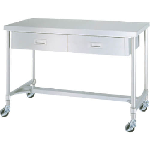 โต๊ะทำงานสแตนเลสมีลิ้นชักด้านหนึ่งมีล้อโครงตัว H กว้าง 1200 x ลึก 750 x สูง 800