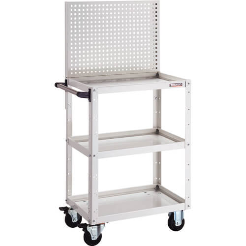 ลูกล้อที่มีตัวล็อคสองชั้นที่ล็อคเพลาและล้อ การแกว่งในแนวตั้งและแนวนอนลดลงโดยการยื่นออกมาจากเสามุมและยึดกระดานชั้นวาง กระดานวางของใช้ได้ทั้งด้านหน้าและด้านหลังแบบจานและแบบเรียบ