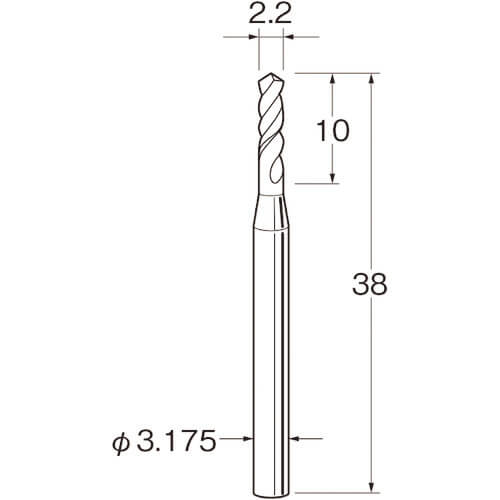ดอกสว่านบิด (โลหะผสมคาร์ไบด์) เส้นผ่านศูนย์กลางใบมีด (มม.): 2.2 เส้นผ่านศูนย์กลางก้าน (มม.): 3.175
