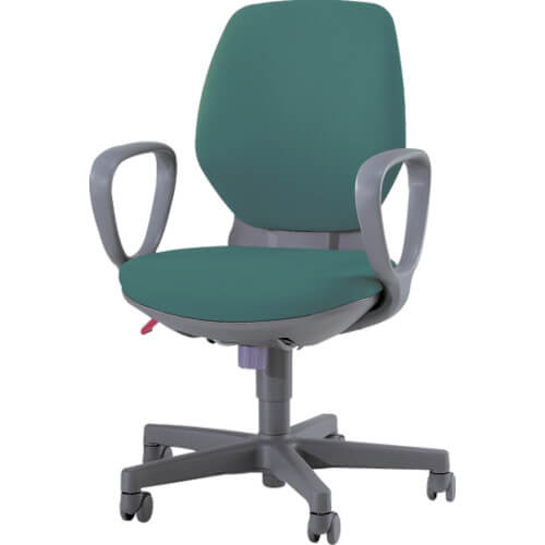 พนักพิงสูงแบบแขนวงกลม เบาะ: โพลีเอสเตอร์รีไซเคิล เบาะ: เบาะนั่งยูรีเทนขึ้นรูป พนักพิง: สักหลาดรีไซเคิลจากขวด PET ข้อศอก: ผลิตภัณฑ์ขึ้นรูปเรซิน PP ขา: เหล็กพร้อมฝาครอบขึ้นรูปเรซิน PP ล้อ: ล้อคู่ไนลอน ปรับแรงล็อคได้ด้วยตัวหยุดล็อค ถอยหลังขึ้นและลง ปรับ45mm