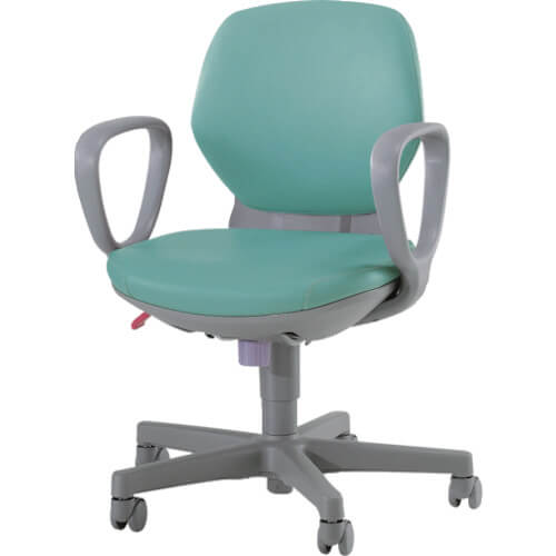 พนักพิงต่ำแบบแขนวงกลม เบาะ: เบาะหนังโพลีโอเลฟิน เบาะ: เบาะนั่งยูรีเทน ด้านหลัง: สักหลาดรีไซเคิลขวด PET ข้อศอก: ขึ้นรูปเรซิน PP ขา: เหล็ก ขึ้นรูปเรซิน PP พร้อมฝาครอบ ล้อ: ล้อคู่ไนลอน ปรับความแรงในการโยกได้ การโยก 45 มม. ปรับเอนหลังขึ้นและลงได้ ลงด้วยจุก