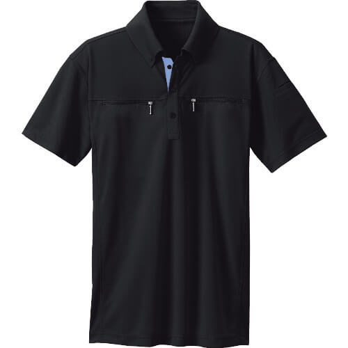 Button-down double zip short-sleeved polo shirt (unisex) black 3L