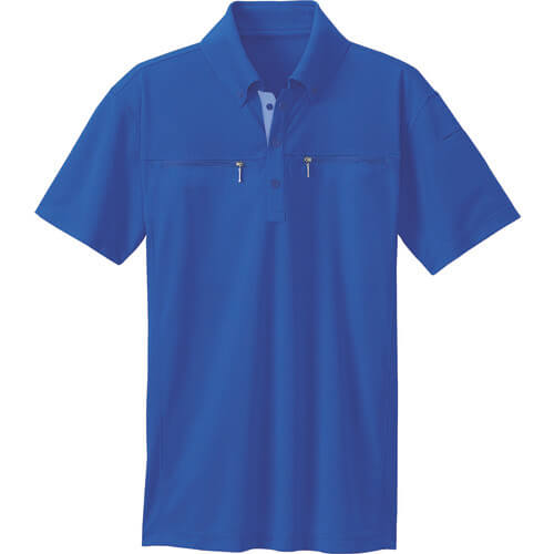 Button-down double zip short-sleeved polo shirt (unisex) blue L