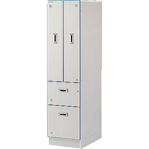 ขวดน้ำยาขนาด 500 มล. สามารถเก็บไว้ที่ระดับบน ขวดน้ำยา 1 000 มล. ที่ระดับกลาง และขวดแกลลอนที่ระดับล่าง ขวดรีเอเจนต์นอกเหนือจาก 500mL และ 1000mL สามารถจัดเก็บได้โดยการเปลี่ยนตัวป้องกันขวดด้านบนและตรงกลาง ประตูหน้ามีกุญแจจึงปลอดภัยในแง่ของการจัดการ สามารถต่อชุดสต๊อกเกอร์ไม้และยึดกับพื้น/ผนังได้