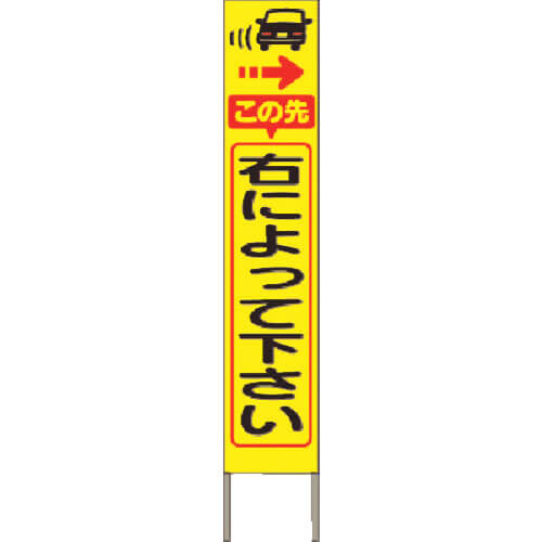 Slim high-brightness reflective signboard Please turn to the right (yellow background)