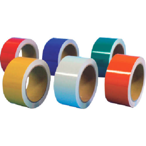เทปทำจากวัสดุอะคริลิกที่มีลูกปัดแก้วปิดอยู่ มันสะท้อนกลับของแสงที่ฉายรังสี