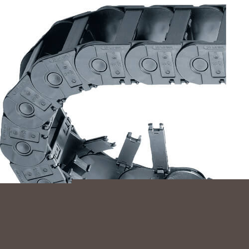ท่อป้องกันสายเคเบิลเรซินประสิทธิภาพสูงที่ป้องกันและนำทางสายเคเบิลและท่ออ่อนที่เคลื่อนไหวในชิ้นส่วนที่เคลื่อนไหวของเครื่องจักรอุตสาหกรรม ประกอบง่าย ทนทาน และเสียงเงียบ มีความสูงภายในขนาดใหญ่และความมั่นคงสูง