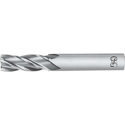 - A 4 flute end mill that uses high toughness carbide alloy and has longer life in the middle to low speed range.