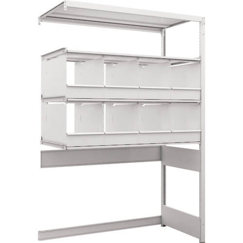 K1 type antibacterial coating high-density storage shelf lower level open type H1900XW1250XD625 4 levels with 8 partition trays connected type