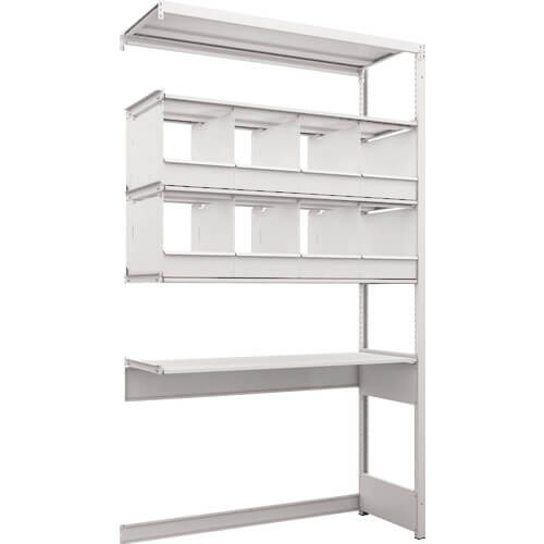 ส่วนด้านล่างแบบเปิดสามารถใช้เป็นพื้นที่ติดตั้งเกวียนและรถเข็นได้ แป้งเคลือบสารต้านแบคทีเรียช่วยรักษาความสะอาด (SIAA:JP0122258A0001W) สามารถแบ่งพื้นที่จัดเก็บได้ด้วยถาดแบ่งพาร์ติชั่น ทำให้เหมาะสำหรับการจัดเก็บผลิตภัณฑ์ที่หลากหลายในปริมาณน้อย เนื่องจากสามารถปรับตำแหน่งของกระดานชั้นวางได้ในระยะพิทช์ 25 มม. จึงสามารถเปลี่ยนได้อย่างอิสระตามรายการที่จัดเก็บ หากความสูงและความลึกเท่ากัน คุณสามารถเพิ่มได้ นอกจากนี้ยังสามารถลดต้นทุนได้โดยใช้สตรัทเป็นตัวค้ำ มาพร้อมกับถาดแบ่งสำหรับนำสิ่งของที่แบ่งย่อยออกจากด้านข้างได้อย่างง่ายดาย