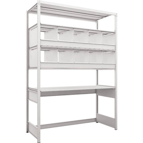 ส่วนด้านล่างแบบเปิดสามารถใช้เป็นพื้นที่ติดตั้งเกวียนและรถเข็นได้ แป้งเคลือบสารต้านแบคทีเรียช่วยรักษาความสะอาด (SIAA:JP0122258A0001W) สามารถแบ่งพื้นที่จัดเก็บได้ด้วยถาดแบ่งพาร์ติชั่น ทำให้เหมาะสำหรับการจัดเก็บผลิตภัณฑ์ที่หลากหลายในปริมาณน้อย เนื่องจากสามารถปรับตำแหน่งของกระดานชั้นวางได้ในระยะพิทช์ 25 มม. จึงสามารถเปลี่ยนได้อย่างอิสระตามรายการที่จัดเก็บ หากความสูงและความลึกเท่ากัน คุณสามารถเพิ่มได้ นอกจากนี้ยังสามารถลดต้นทุนได้โดยใช้สตรัทเป็นตัวค้ำ มาพร้อมกับถาดแบ่งสำหรับนำสิ่งของที่แบ่งย่อยออกจากด้านข้างได้อย่างง่ายดาย