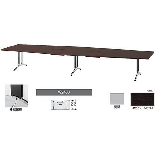 ขา: สีดำ แผ่นด้านบน: วอลนัท (ไม้วีเนียร์) ขนาดภายนอก (มม.) กว้าง x ลึก x สูง: 2400 x 1200 x 714 ขนาดช่องเปิดสายไฟ (มม.): 400 x 120 x |