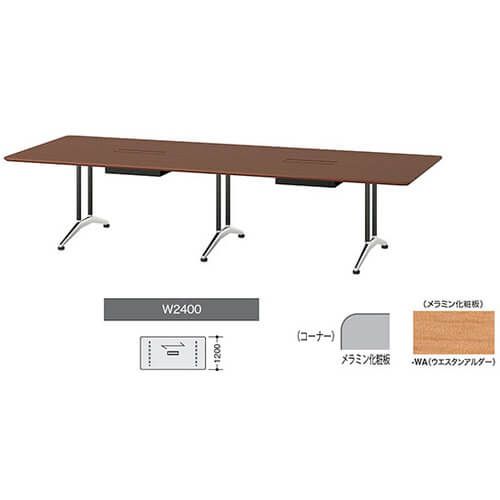 ขา: สีดำ แผ่นด้านบน: ไม้ชนิดหนึ่งตะวันตก ขนาดภายนอก (มม.) กว้าง x ลึก x สูง: 2400 x 1200 x 714 ขนาดช่องเปิดสายไฟ (มม.): 400 x 120 x |