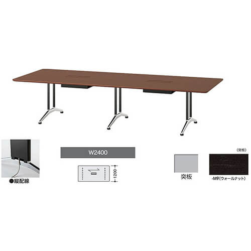 ขา: สีดำ แผ่นด้านบน: วอลนัท (ไม้วีเนียร์) ขนาดภายนอก (มม.) กว้าง x ลึก x สูง: 2400 x 1200 x 714 ขนาดช่องเปิดสายไฟ (มม.): 400 x 120 x |