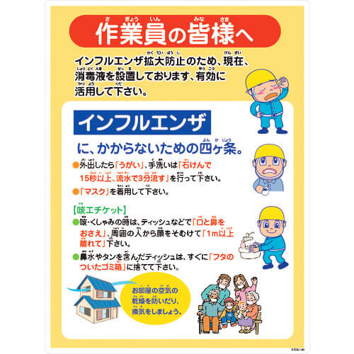 มันจะเป็นป้ายการ์ตูนที่เข้าใจง่าย เป็นป้ายเตือนประชาชนไม่ให้ติดเชื้อไข้หวัดใหญ่ โดยติดป้าย วิธีป้องกันไข้หวัดใหญ่