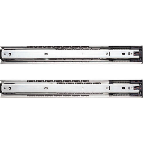 รางสำหรับบรรทุกหนัก (รับน้ำหนักสูงสุด 100 กก.) พร้อมระบบปิดเองและนุ่มนวล แรงสปริงแบบ Soft-close สามารถเปลี่ยนได้เอง สามารถถอดชิ้นส่วนด้านในออกได้โดยใช้คันโยก
