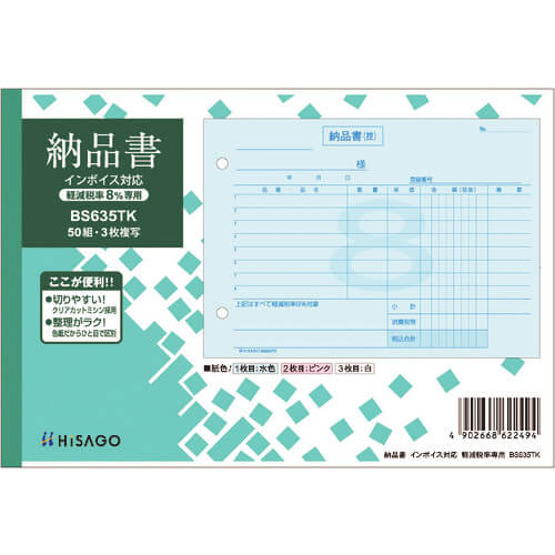 นี่คือใบนำส่งประเภทใบแจ้งหนี้ที่สอดคล้องกับระบบอัตราภาษีที่ลดลง เป็นประเภทที่ใช้เฉพาะสำหรับอัตราภาษีที่ลดลง ขอแนะนำเมื่อประมวลผลอัตราภาษีแยกกันสำหรับแต่ละสลิป สามารถคำนวณภาษีการบริโภคสำหรับแต่ละใบแจ้งหนี้ เรายังสนับสนุนการเรียกเก็บเงินที่เกิดขึ้นประจำ เนื่องจากใช้กระดาษสี จึงสะดวกในการจัดระเบียบสลิป มาพร้อมกับแผ่นรองพื้นที่สามารถตัดออกและใช้งานได้ เราใช้จักรเย็บผ้าแบบใส ตัดได้สะอาด เราใช้กระดาษไร้คาร์บอนที่ช่วยให้มือของคุณสะอาด