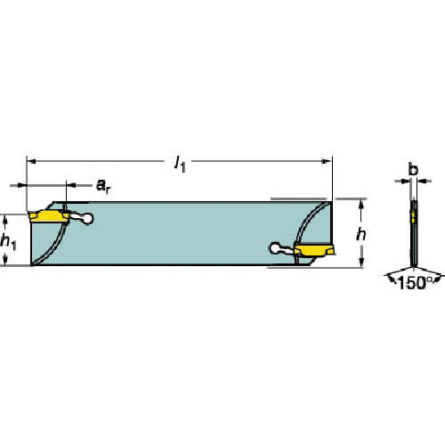 ใบมีดคัตเตอร์ Sandvik CoroCut 1/2 (แบบปลายคู่) ปลายเกจ: N123D2-0150-CM ความลึกตัดสูงสุด: 15; l1: 150 |