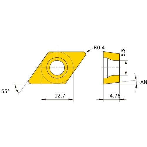 รูปทรงเม็ดมีด: สี่เหลี่ยมขนมเปียกปูน 55°