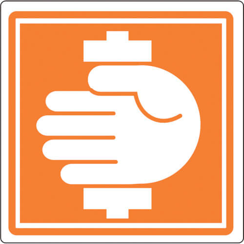 ป้ายแสดงคำเตือนความรับผิดต่อผลิตภัณฑ์ (PL) อย่างง่ายที่มีเฉพาะสัญลักษณ์ (สัญลักษณ์) เขียนอยู่