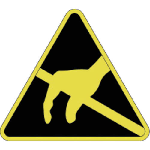 ขนาดสามเหลี่ยม: 11.01 มม. ช่วงอุณหภูมิการทำงาน: -40 ถึง 80°C ภายในอาคาร เนื้อหาที่แสดง: ข้อควรระวังจากไฟฟ้าสถิตย์ |