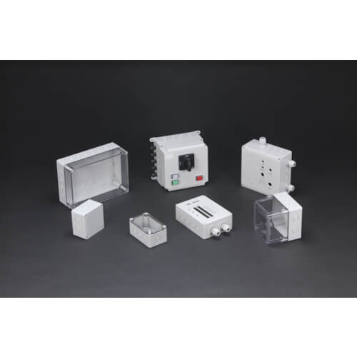 กล่องกันน้ำและกันฝุ่นทำจากโพลีคาร์บอเนตที่ทนต่อแรงกระแทกได้ดีเยี่ยม รูสำหรับเดินสายไฟสามารถใช้น็อคเอาต์ขนาดสกรู M ได้