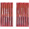 ผิวสำเร็จ: ชุด 12 ชิ้น, ลายหยาบ ความยาวรวม: 170 มม. ความยาวใบมีด: 70 มม. ความกว้างใบมีด: 4 มม. ความหนาใบมีด: 2.2 มม. รูปทรง: คมสองด้าน ความหยาบ: 01 (หยาบ) 17 ครั้งต่อซม. |