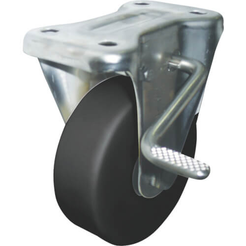ล้อ MC ไนลอนแบบนำไฟฟ้า (รวมตลับลูกปืน) พร้อมตัวหยุดฉากยึดสเตนเลสสตีล